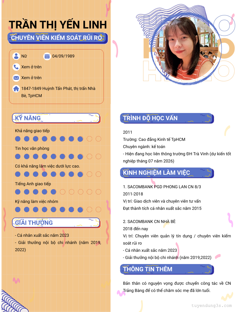 Mở xem thông tin đầy đủ ứng viên TRẦN THỊ YẾN LINH chỉ với 2 điểm. Ứng viên được cập nhật ngày 06/10/2025