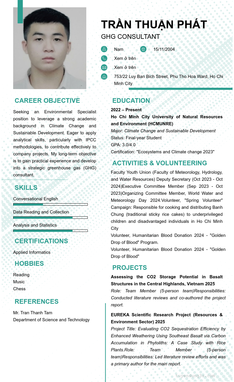 Nơi ở hiện tại: 753/22 Luy Ban Bich Street, Phu Tho Hoa Ward, Ho Chi Minh City