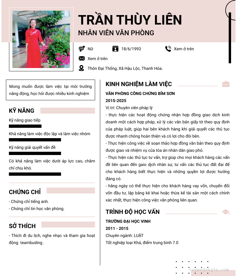 Mở xem thông tin đầy đủ ứng viên TRẦN THÙY LIÊN chỉ với 2 điểm. Ứng viên được cập nhật ngày 23/09/2025