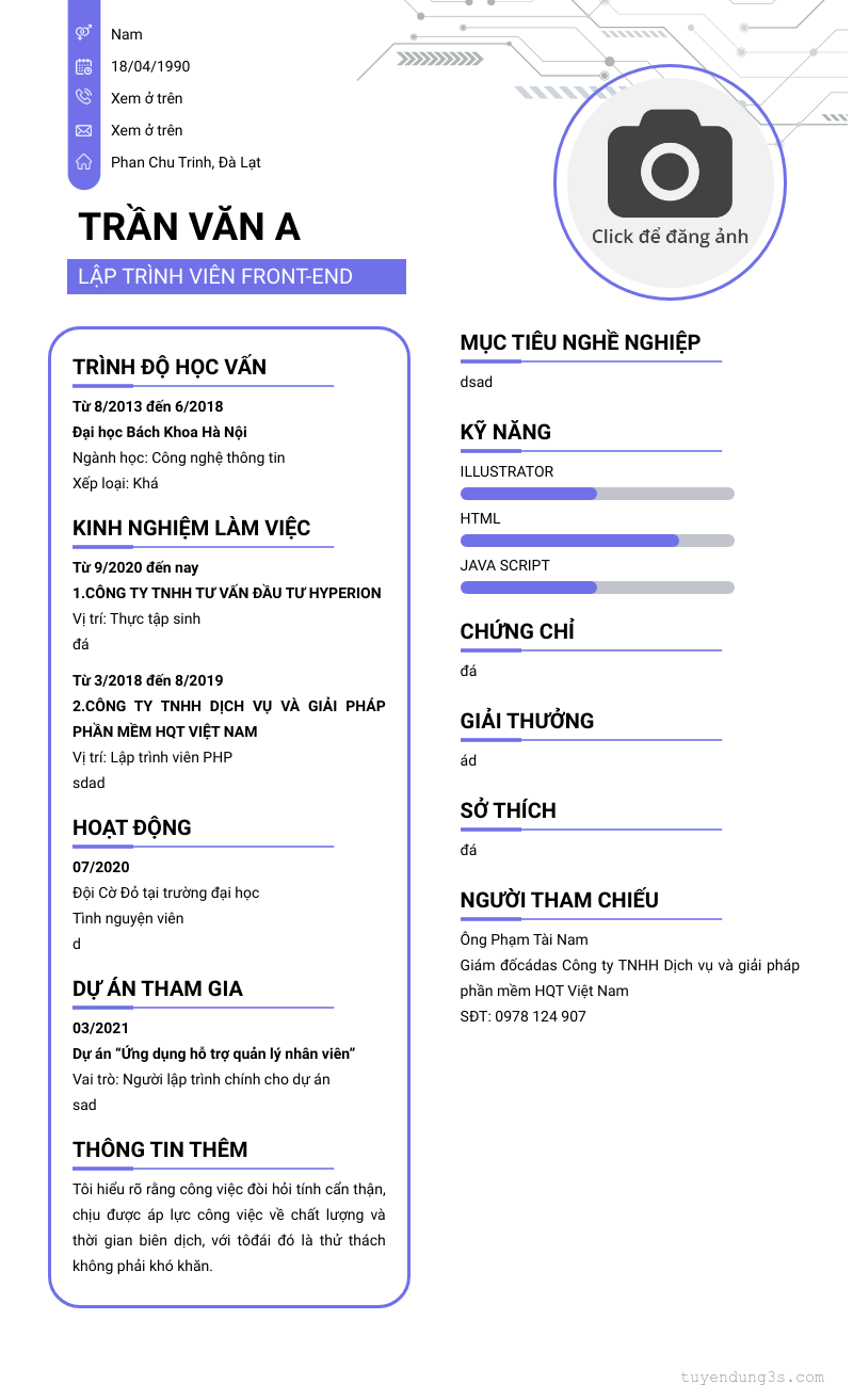 Mở xem thông tin đầy đủ ứng viên Trần Văn A chỉ với 2 điểm. Ứng viên được cập nhật ngày 27/11/2025