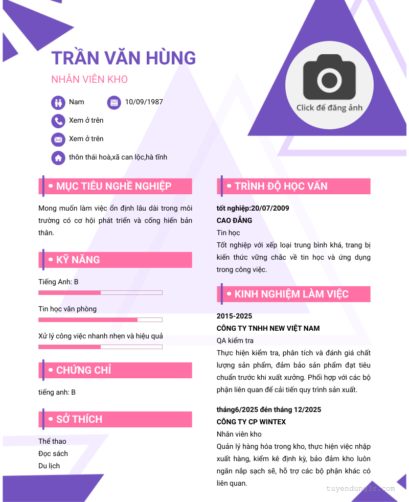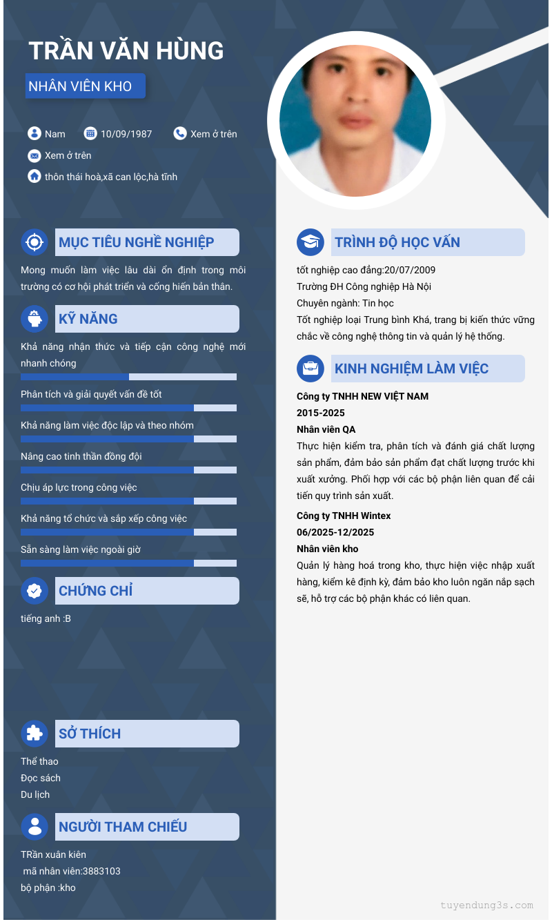 Mở xem thông tin đầy đủ ứng viên Trần Văn Hùng chỉ với 2 điểm. Ứng viên được cập nhật ngày 23/03/2026