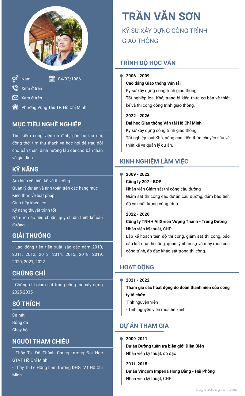 Mở xem thông tin đầy đủ ứng viên TRẦN VĂN SƠN chỉ với 2 điểm. Ứng viên được cập nhật ngày 03/03/2026