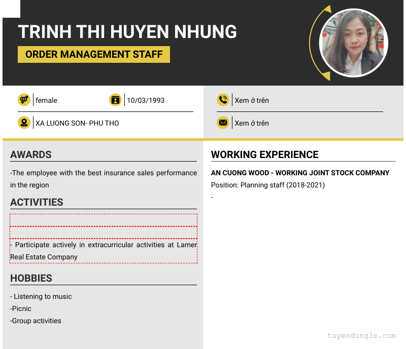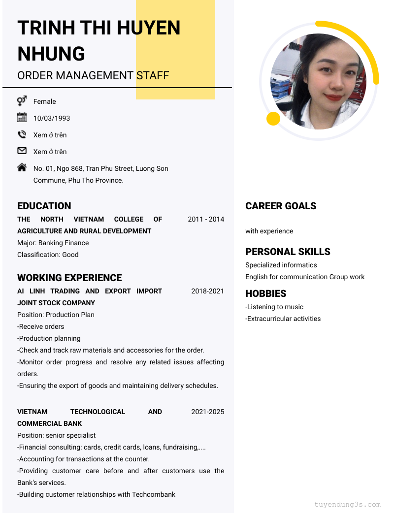 Mở xem thông tin đầy đủ ứng viên Trinh Thi Huyen Nhung chỉ với 2 điểm. Ứng viên được cập nhật ngày 08/01/2026