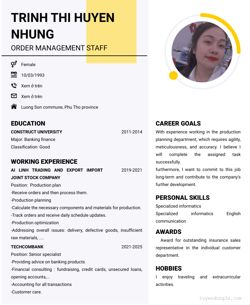 Mở xem thông tin đầy đủ ứng viên Trinh Thi Huyen Nhung chỉ với 2 điểm. Ứng viên được cập nhật ngày 22/12/2025