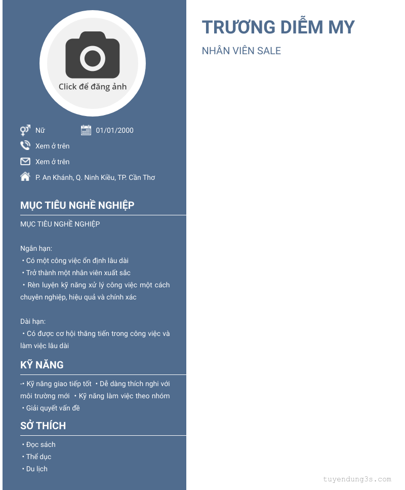 Nơi ở hiện tại: P. An Khánh, Q. Ninh Kiều, TP. Cần Thơ