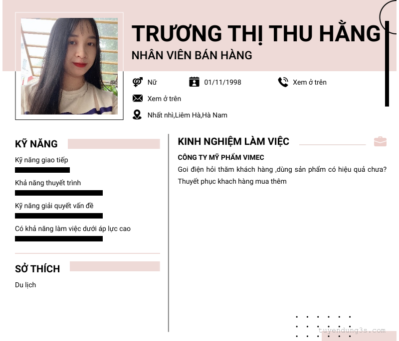 Mở xem thông tin đầy đủ ứng viên Trương Thị Thu Hằng chỉ với 2 điểm. Ứng viên được cập nhật ngày 28/10/2025