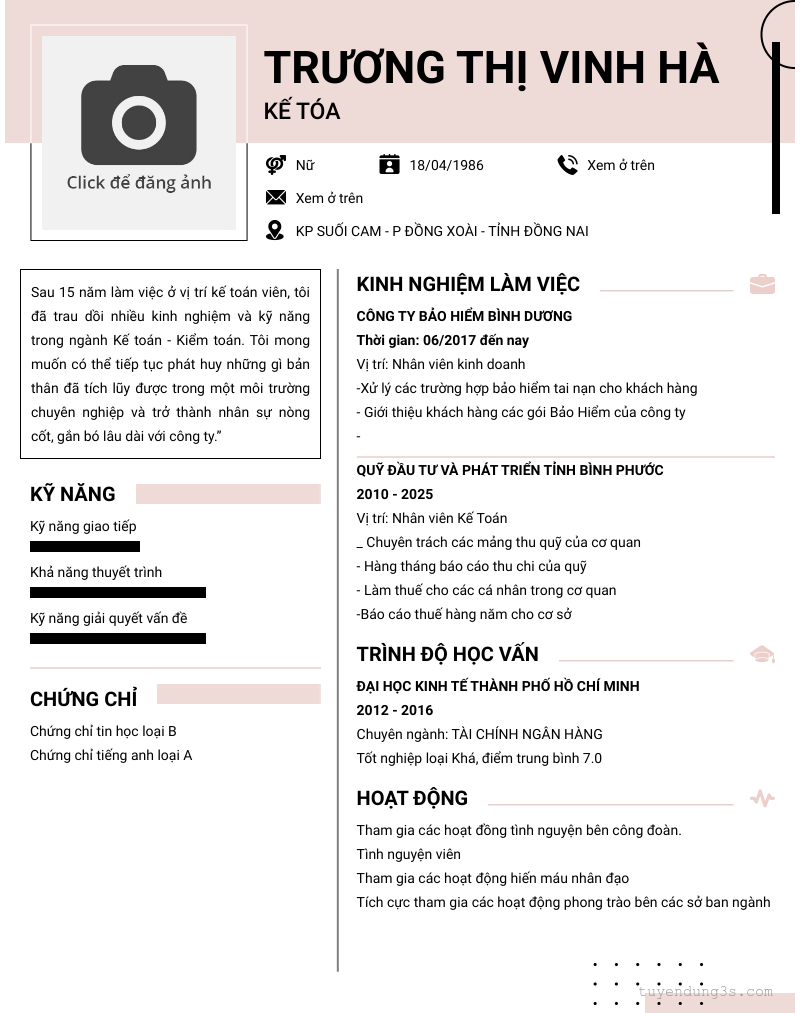 Mở xem thông tin đầy đủ ứng viên TRƯƠNG THỊ VINH HÀ chỉ với 2 điểm. Ứng viên được cập nhật ngày 25/10/2025