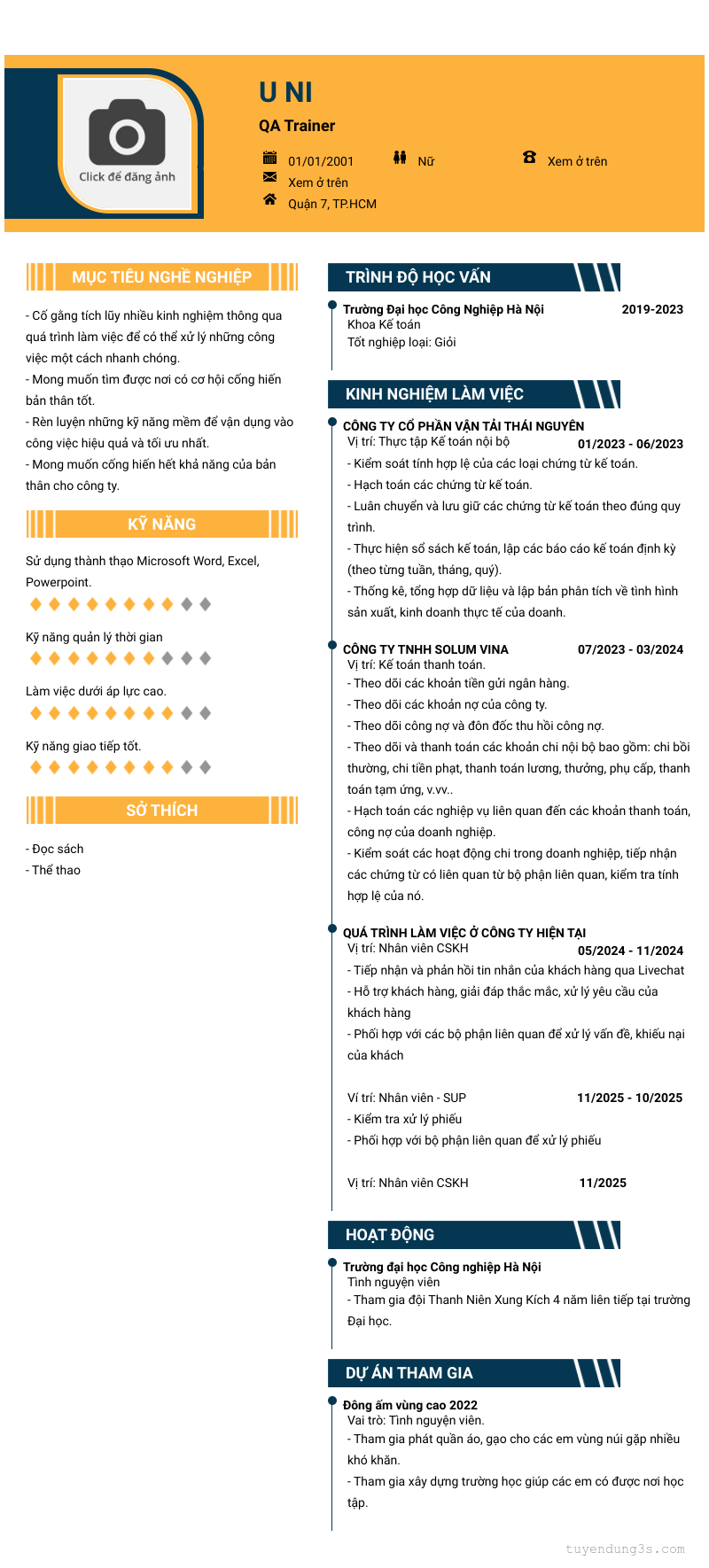 Mở xem thông tin đầy đủ ứng viên U Ni chỉ với 2 điểm. Ứng viên được cập nhật ngày 28/11/2025