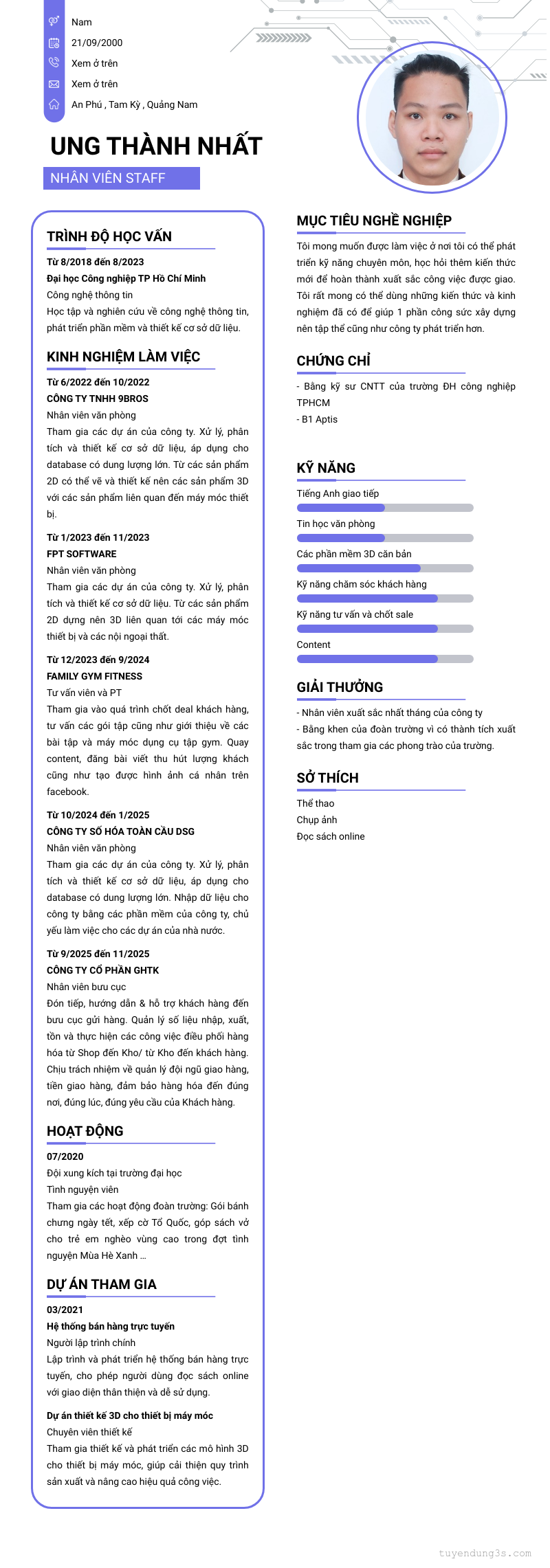 Mở xem thông tin đầy đủ ứng viên Ung Thành Nhất chỉ với 2 điểm. Ứng viên được cập nhật ngày 31/10/2025
