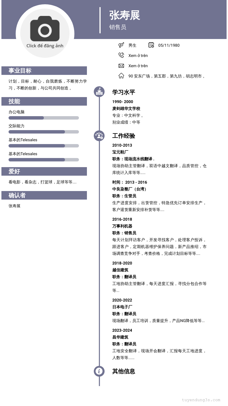 Mở xem thông tin đầy đủ ứng viên 张寿展 chỉ với 2 điểm. Ứng viên được cập nhật ngày 04/05/2024
