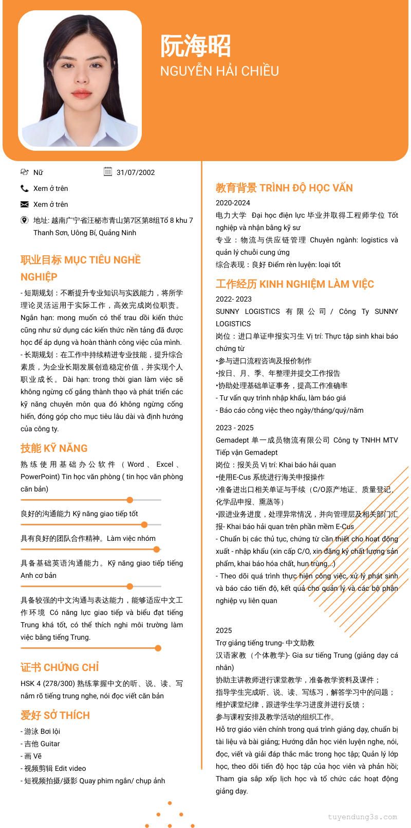 Nơi ở hiện tại: 地址: 越南广宁省汪秘市青山第7区第8组Tổ 8 khu 7 Thanh Sơn, Uông Bí, Quảng Ninh