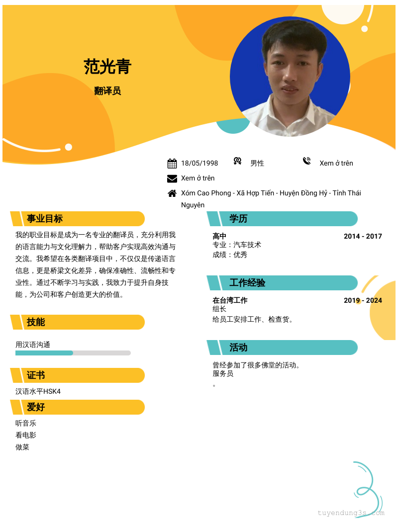 Mở xem thông tin đầy đủ ứng viên 范光青 chỉ với 2 điểm. Ứng viên được cập nhật ngày 10/12/2025