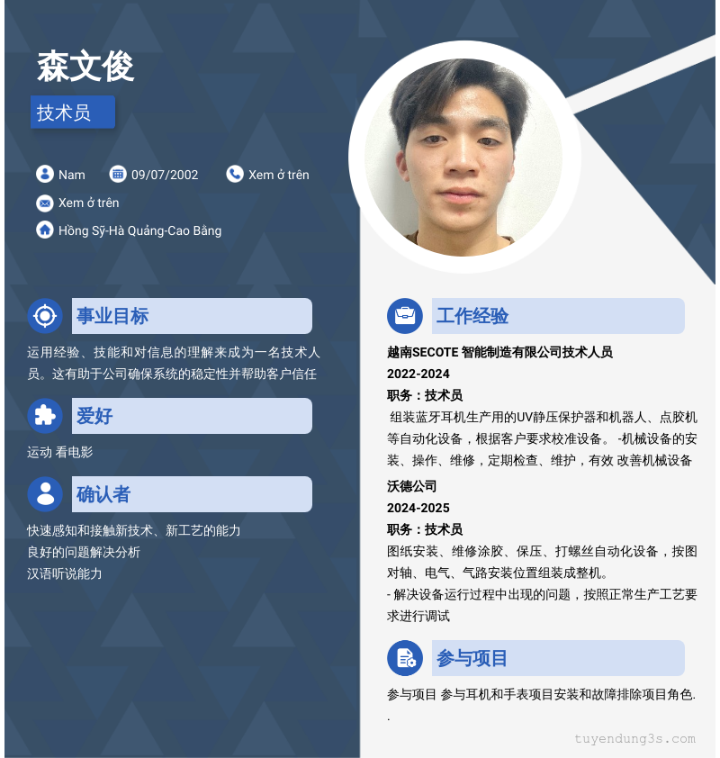 Mở xem thông tin đầy đủ ứng viên 森文俊 chỉ với 2 điểm. Ứng viên được cập nhật ngày 01/10/2025