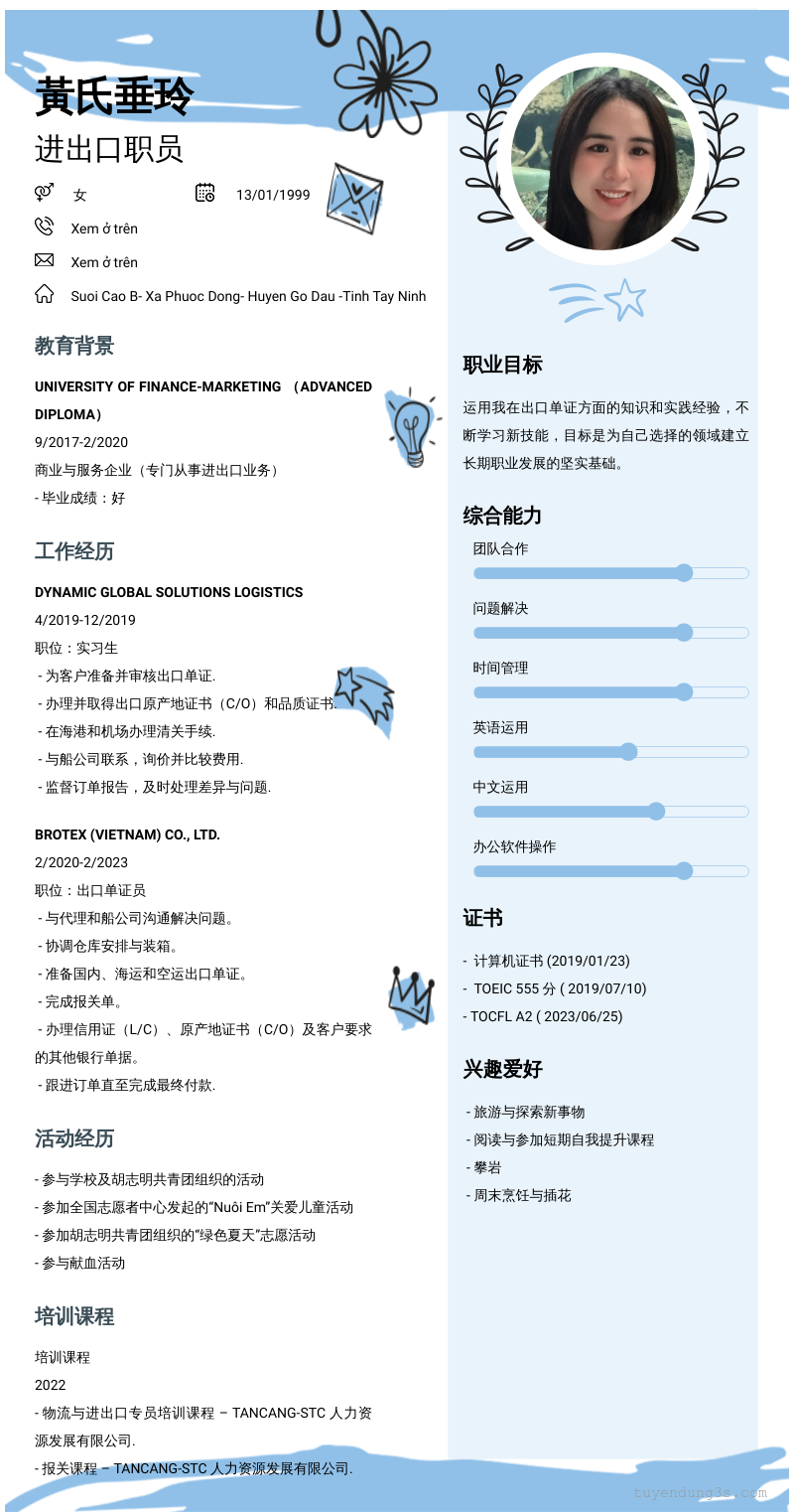 Mở xem thông tin đầy đủ ứng viên 黃氏垂玲 chỉ với 2 điểm. Ứng viên được cập nhật ngày 16/09/2025