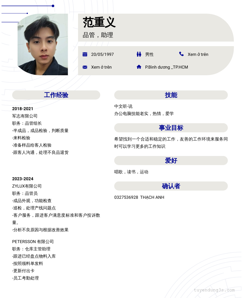 Mở xem thông tin đầy đủ ứng viên 范重义 chỉ với 2 điểm. Ứng viên được cập nhật ngày 26/09/2025