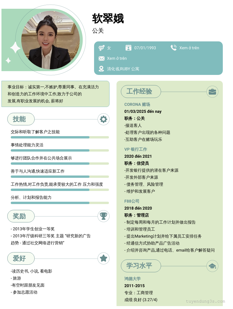 Mở xem thông tin đầy đủ ứng viên 软翠娥 chỉ với 2 điểm. Ứng viên được cập nhật ngày 29/09/2025