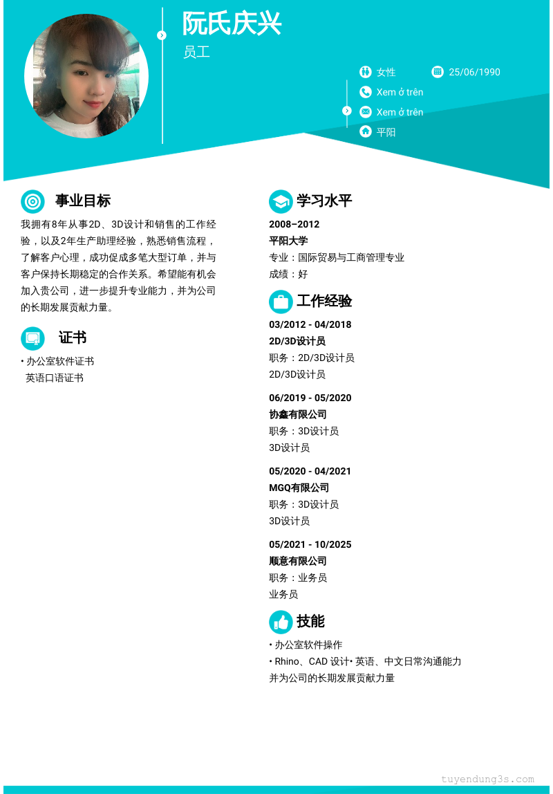 Mở xem thông tin đầy đủ ứng viên 阮氏庆兴 chỉ với 2 điểm. Ứng viên được cập nhật ngày 01/10/2025