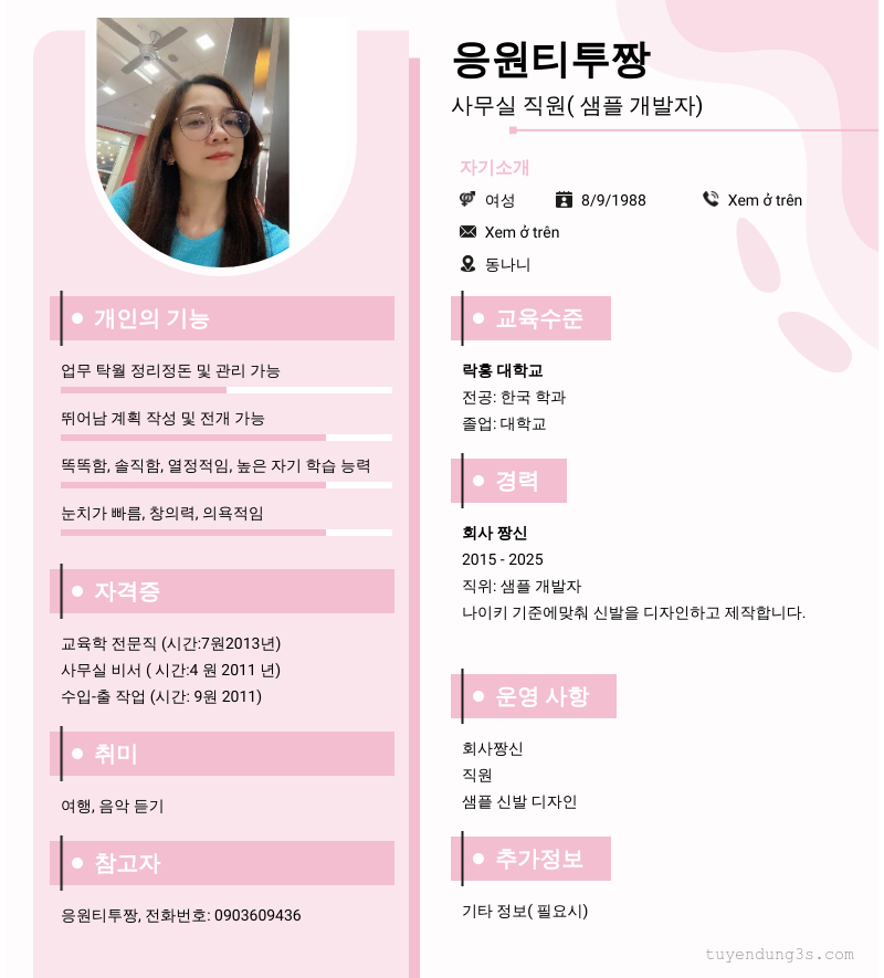 Mở xem thông tin đầy đủ ứng viên 응원티투짱 chỉ với 2 điểm. Ứng viên được cập nhật ngày 12/10/2025