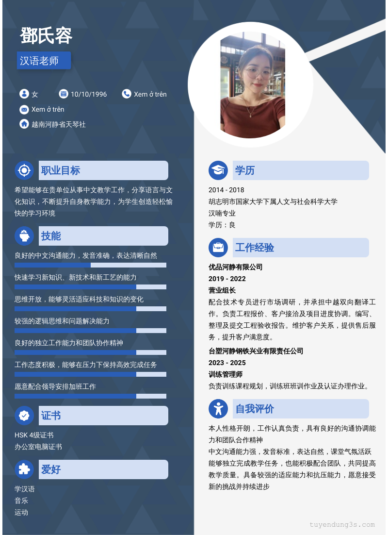 Mở xem thông tin đầy đủ ứng viên 鄧氏容 chỉ với 2 điểm. Ứng viên được cập nhật ngày 13/10/2025