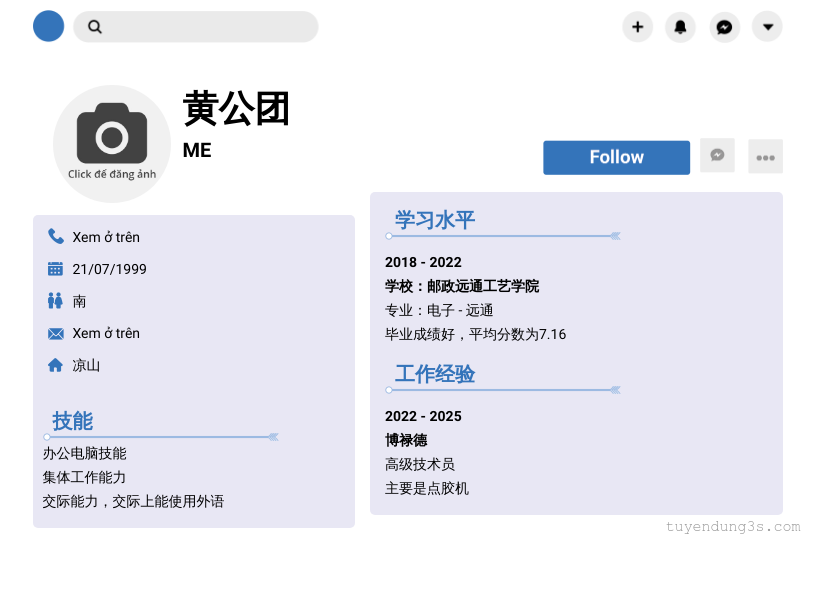 Mở xem thông tin đầy đủ ứng viên 黄公团 chỉ với 2 điểm. Ứng viên được cập nhật ngày 16/10/2025