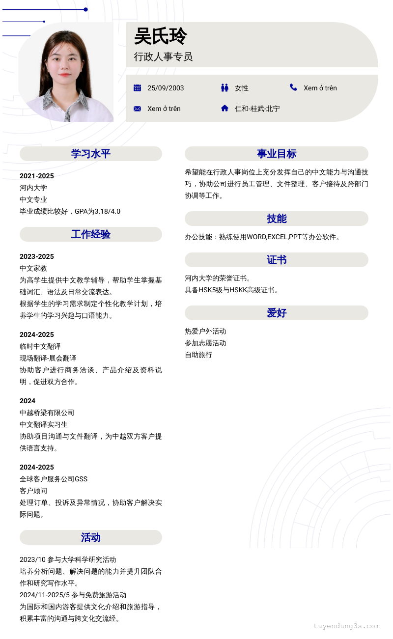 Mở xem thông tin đầy đủ ứng viên 吴氏玲 chỉ với 2 điểm. Ứng viên được cập nhật ngày 20/10/2025
