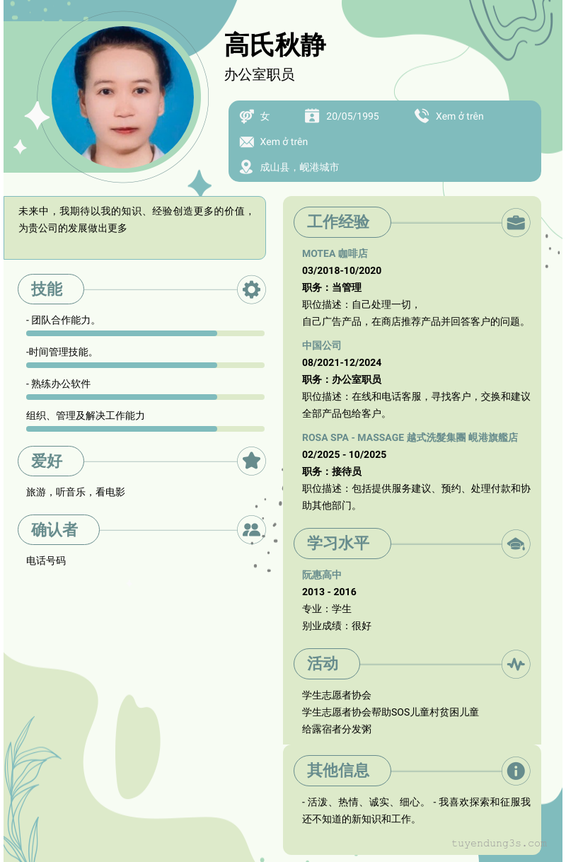 Mở xem thông tin đầy đủ ứng viên 高氏秋静 chỉ với 2 điểm. Ứng viên được cập nhật ngày 23/10/2025