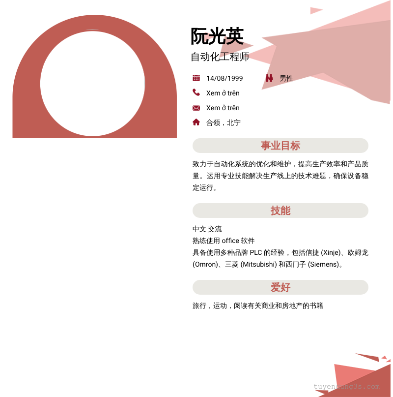 Mở xem thông tin đầy đủ ứng viên 阮光英 chỉ với 2 điểm. Ứng viên được cập nhật ngày 04/11/2025