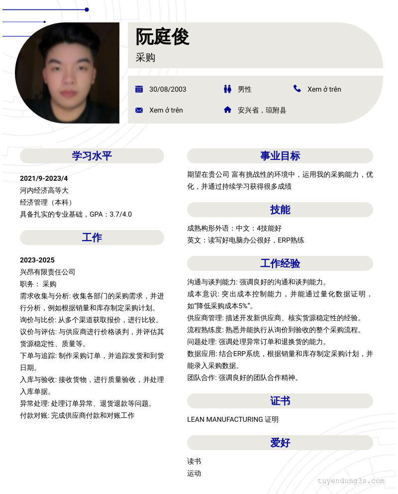 Mở xem thông tin đầy đủ ứng viên 阮庭俊 chỉ với 2 điểm. Ứng viên được cập nhật ngày 21/11/2025