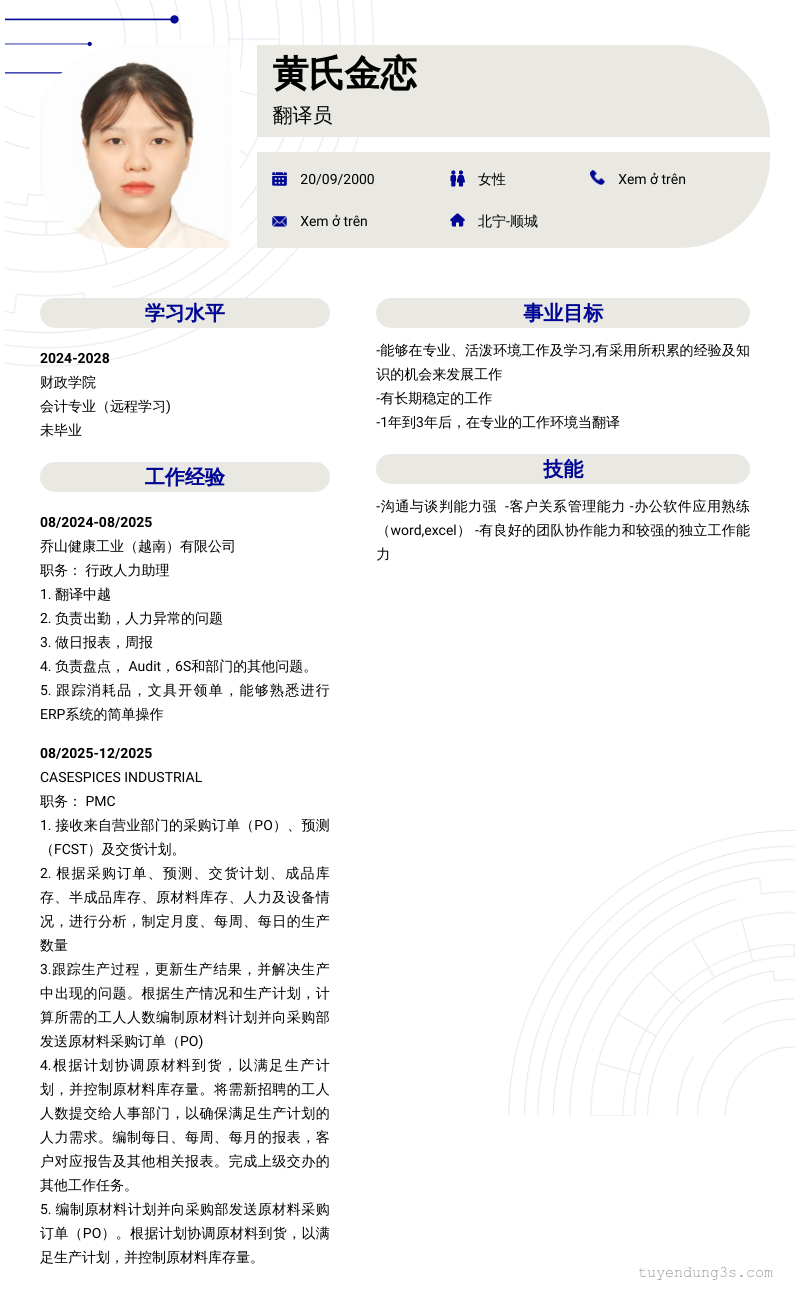 Mở xem thông tin đầy đủ ứng viên 黄氏金恋 chỉ với 2 điểm. Ứng viên được cập nhật ngày 14/12/2025