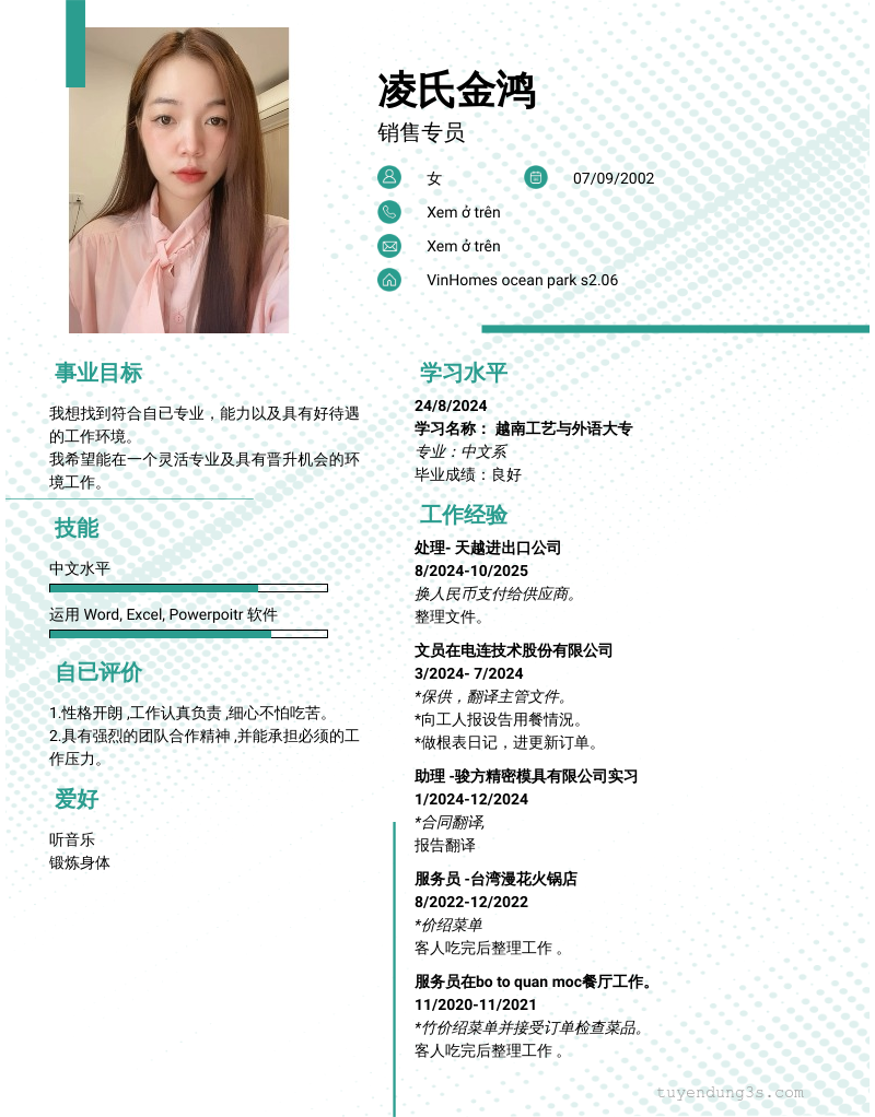 Vị trí: 销售专员