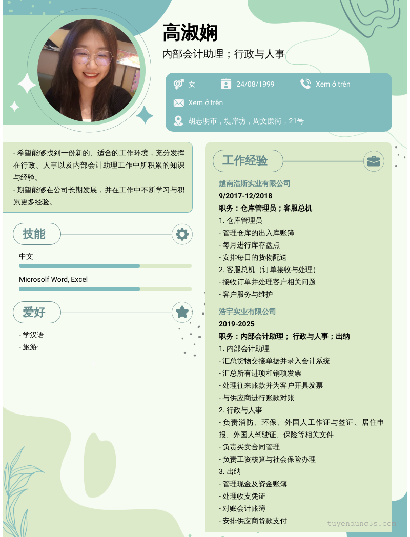 Mở xem thông tin đầy đủ ứng viên 高淑娴 chỉ với 2 điểm. Ứng viên được cập nhật ngày 25/12/2025