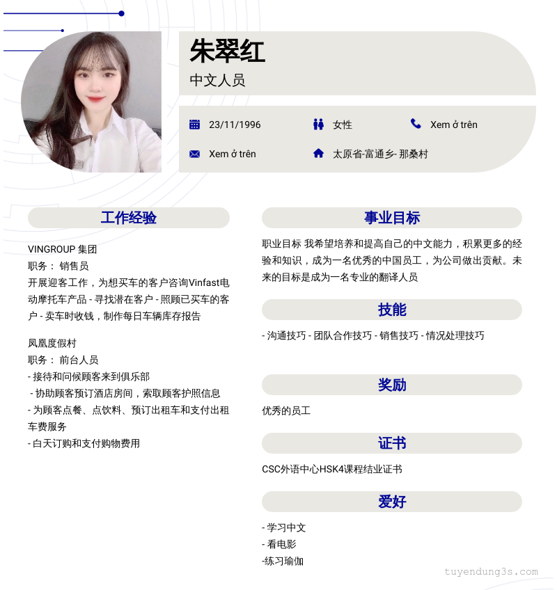 Mở xem thông tin đầy đủ ứng viên 朱翠红 chỉ với 2 điểm. Ứng viên được cập nhật ngày 12/03/2026