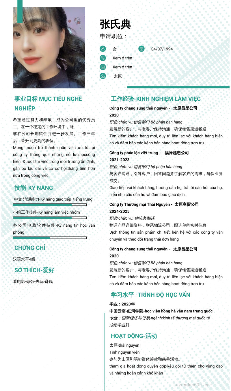 Mở xem thông tin đầy đủ ứng viên 张氏典 chỉ với 2 điểm. Ứng viên được cập nhật ngày 15/03/2026