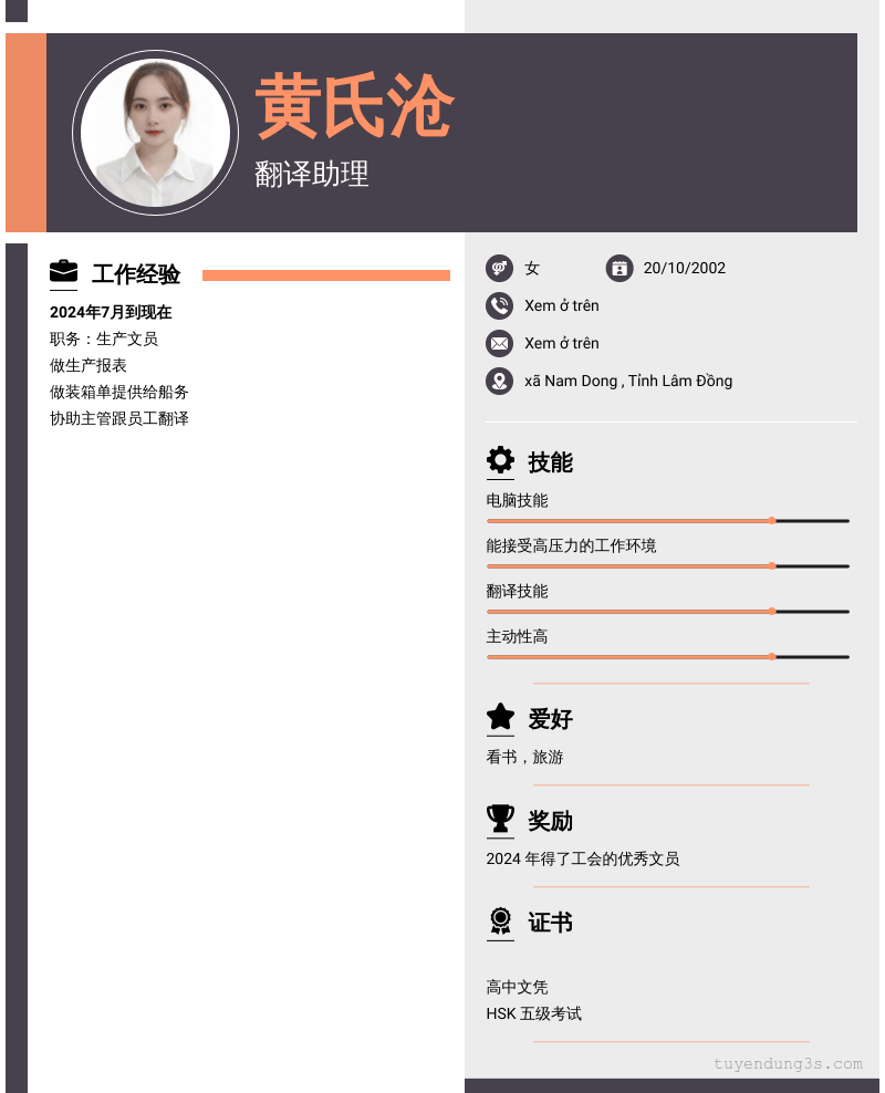 Mở xem thông tin đầy đủ ứng viên 黄氏沧 chỉ với 2 điểm. Ứng viên được cập nhật ngày 07/04/2026