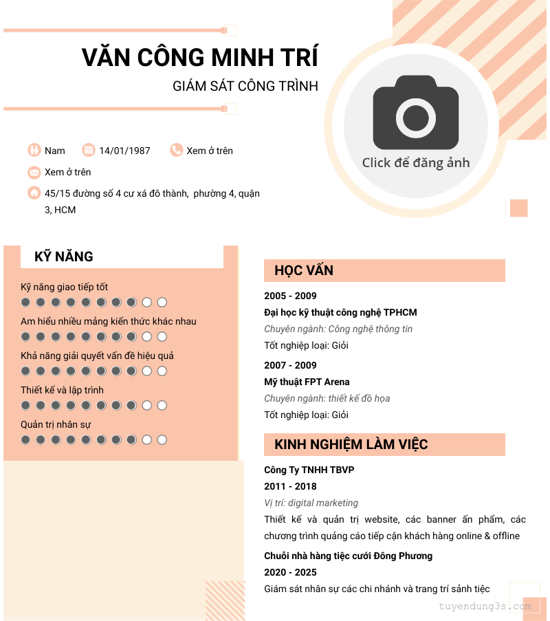 Mở xem thông tin đầy đủ ứng viên Văn CÔng Minh Trí chỉ với 2 điểm. Ứng viên được cập nhật ngày 22/09/2025