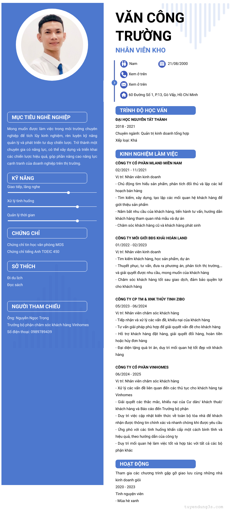Nơi ở hiện tại: 60 Đường Số 1, P.13, Gò Vấp, Hồ Chí Minh