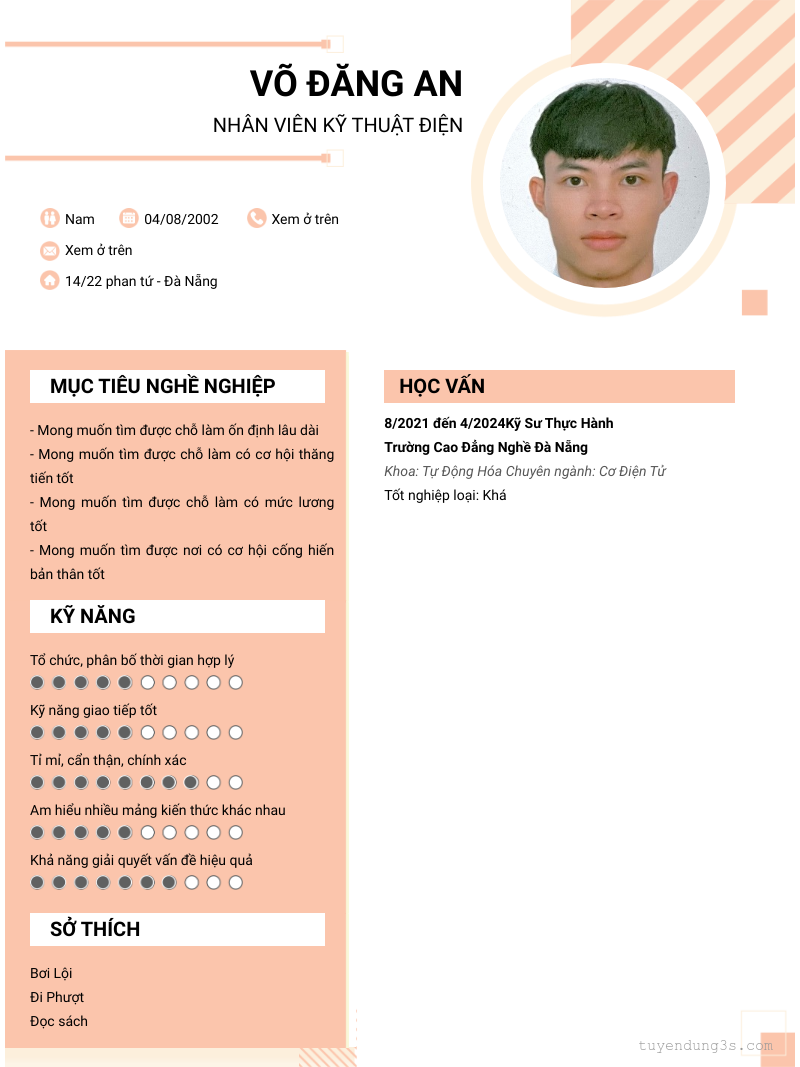 Mở xem thông tin đầy đủ ứng viên Võ Đăng An chỉ với 2 điểm. Ứng viên được cập nhật ngày 29/11/2025