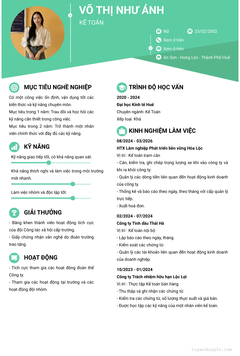 Mở xem thông tin đầy đủ ứng viên Võ Thị Như Ánh chỉ với 2 điểm. Ứng viên được cập nhật ngày 24/04/2026