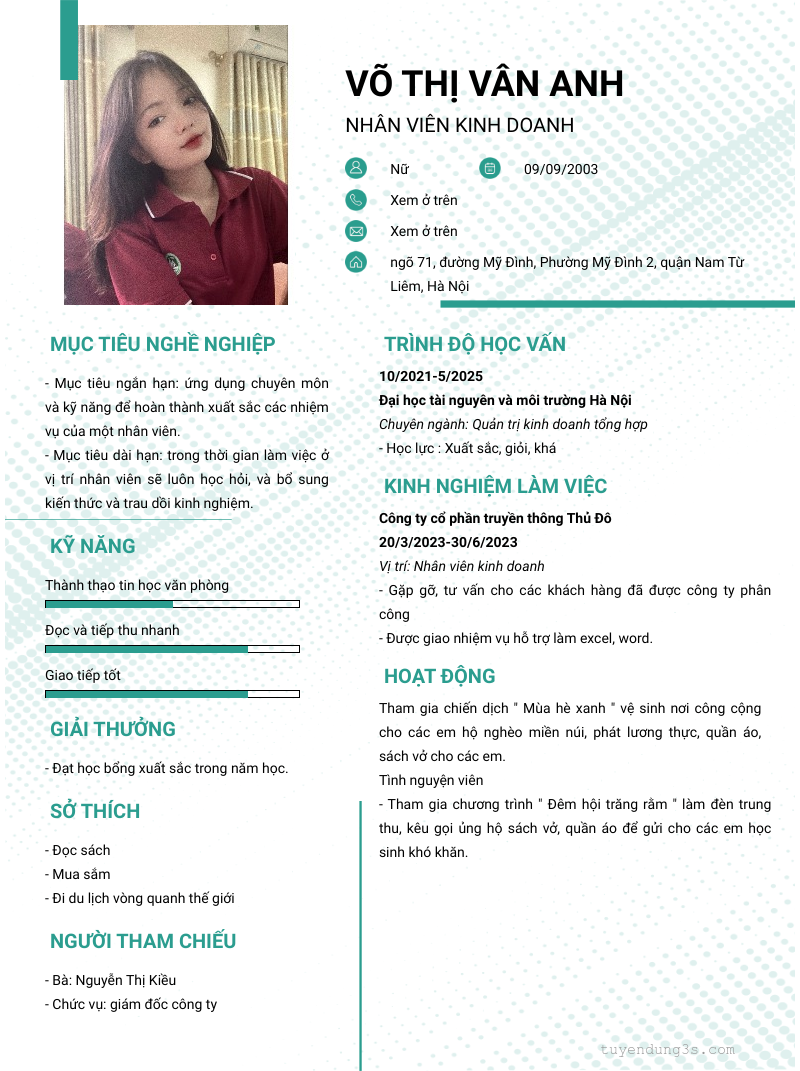 Mở xem thông tin đầy đủ ứng viên VÕ THỊ VÂN ANH chỉ với 2 điểm. Ứng viên được cập nhật ngày 07/03/2024