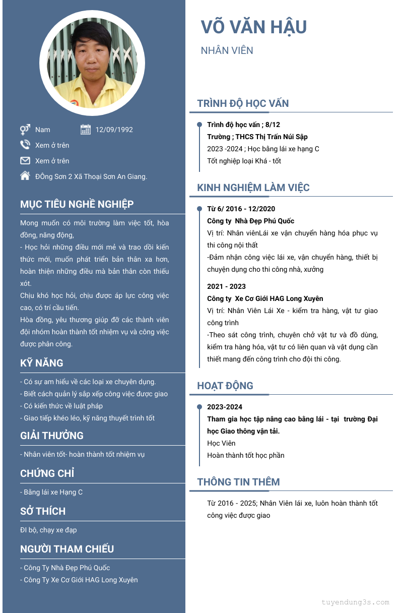 Mở xem thông tin đầy đủ ứng viên Võ Văn Hậu chỉ với 2 điểm. Ứng viên được cập nhật ngày 13/10/2025