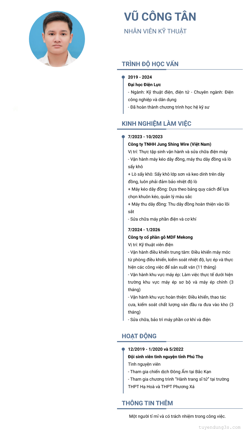 Mở xem thông tin đầy đủ ứng viên Vũ Công Tân chỉ với 2 điểm. Ứng viên được cập nhật ngày 09/01/2026