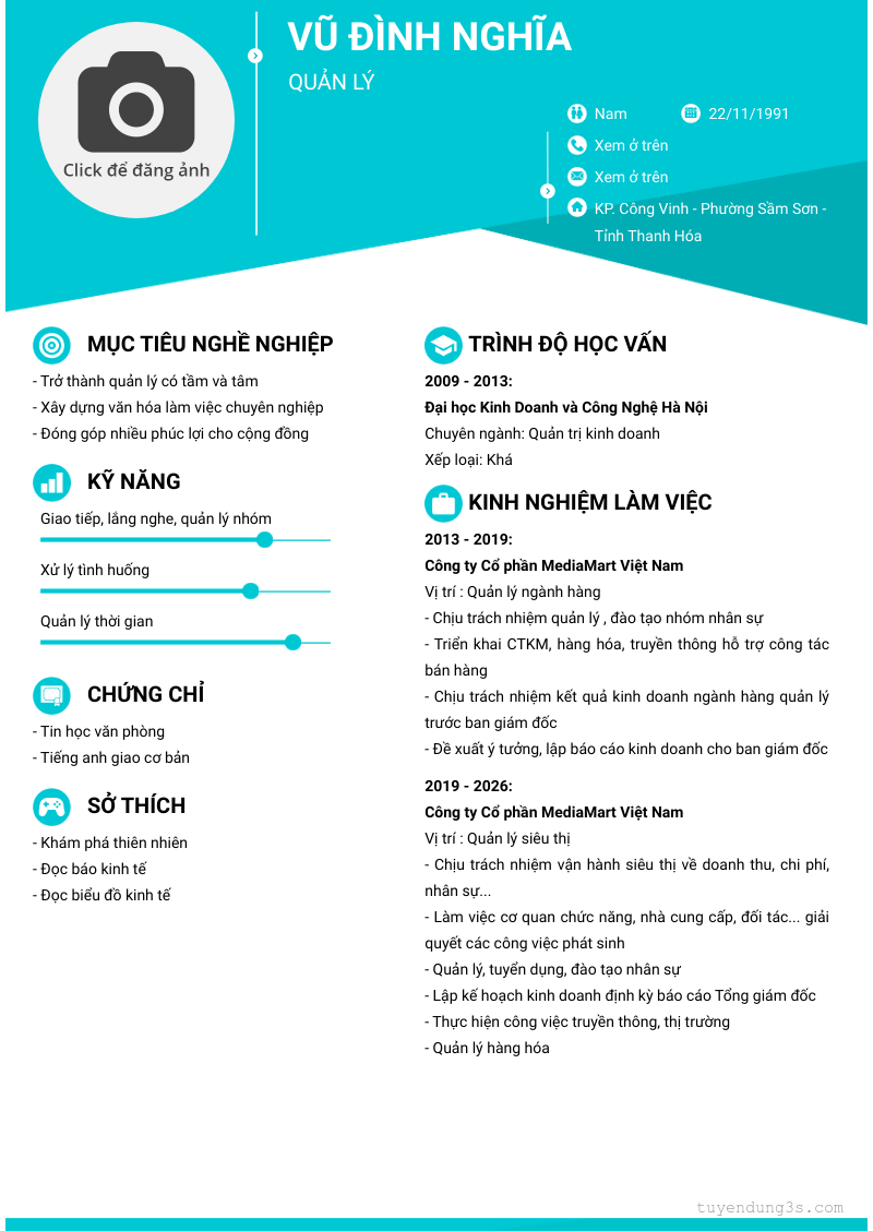 Mở xem thông tin đầy đủ ứng viên Vũ ĐÌnh NGhĩa chỉ với 2 điểm. Ứng viên được cập nhật ngày 30/01/2026
