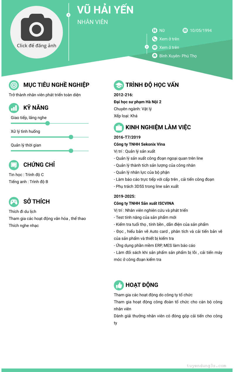 Mở xem thông tin đầy đủ ứng viên Vũ Hải YẾN chỉ với 2 điểm. Ứng viên được cập nhật ngày 26/09/2025