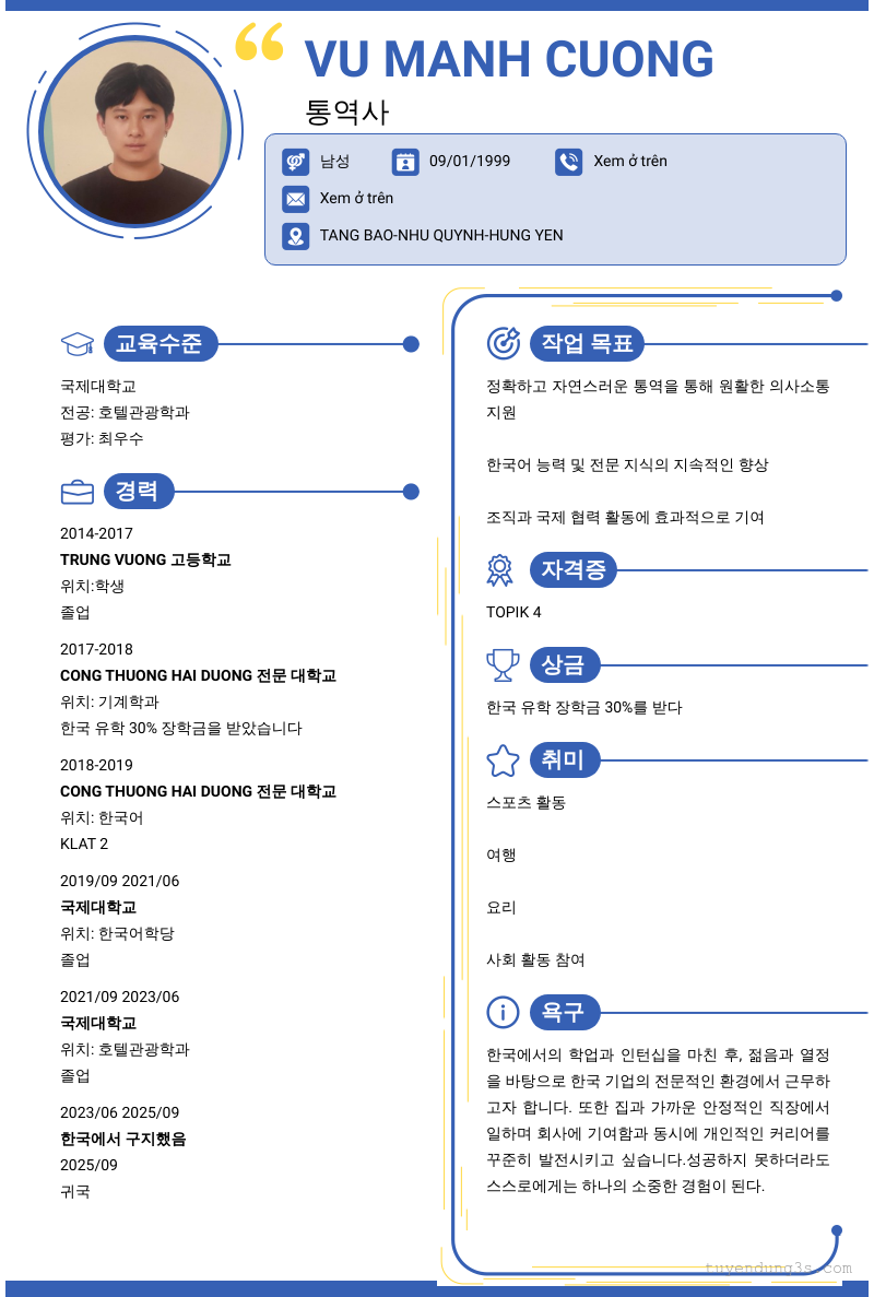 Mở xem thông tin đầy đủ ứng viên Vu Manh Cuong chỉ với 2 điểm. Ứng viên được cập nhật ngày 03/01/2026