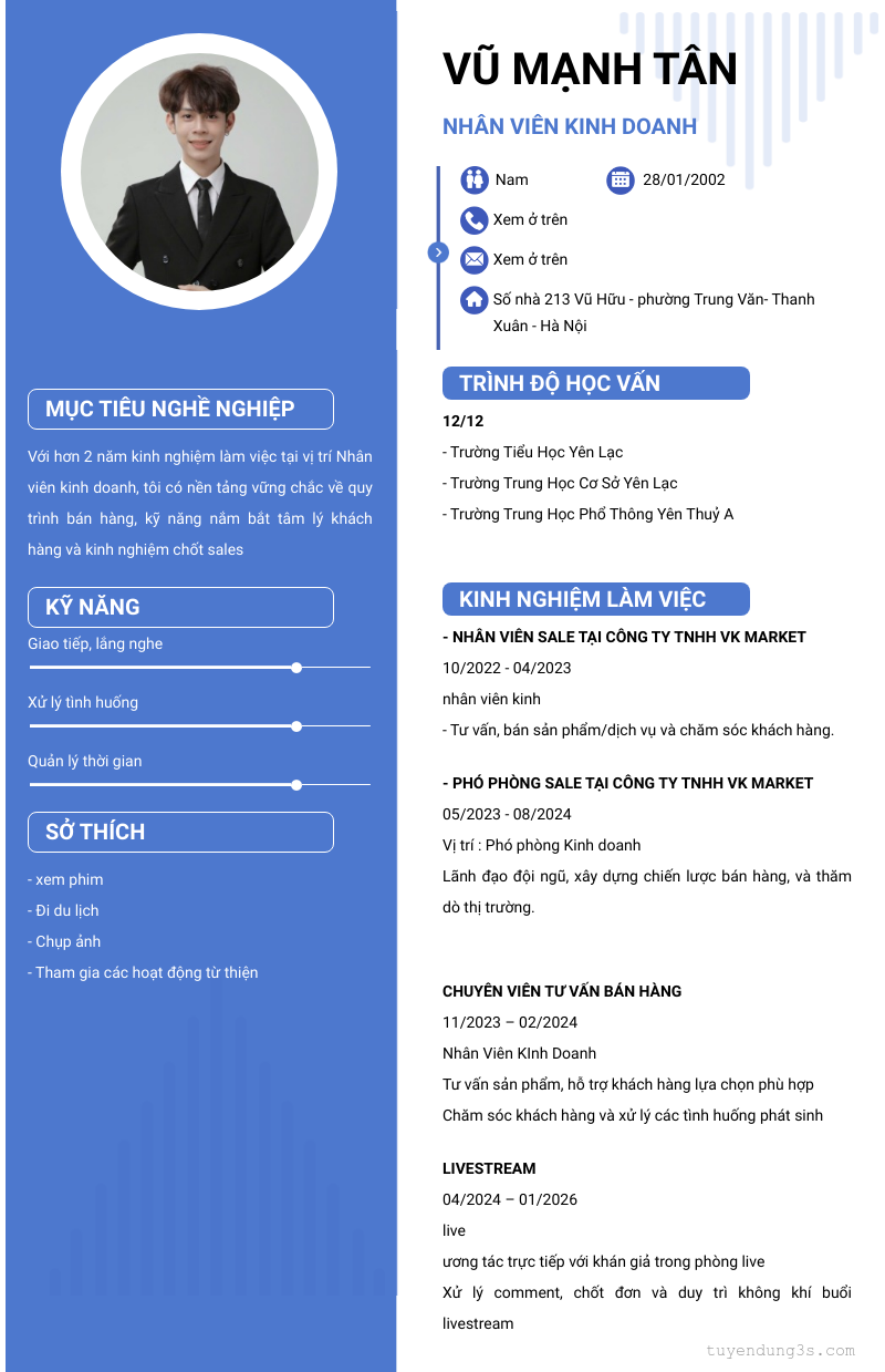 Mở xem thông tin đầy đủ ứng viên Vũ Mạnh Tân chỉ với 2 điểm. Ứng viên được cập nhật ngày 22/03/2026