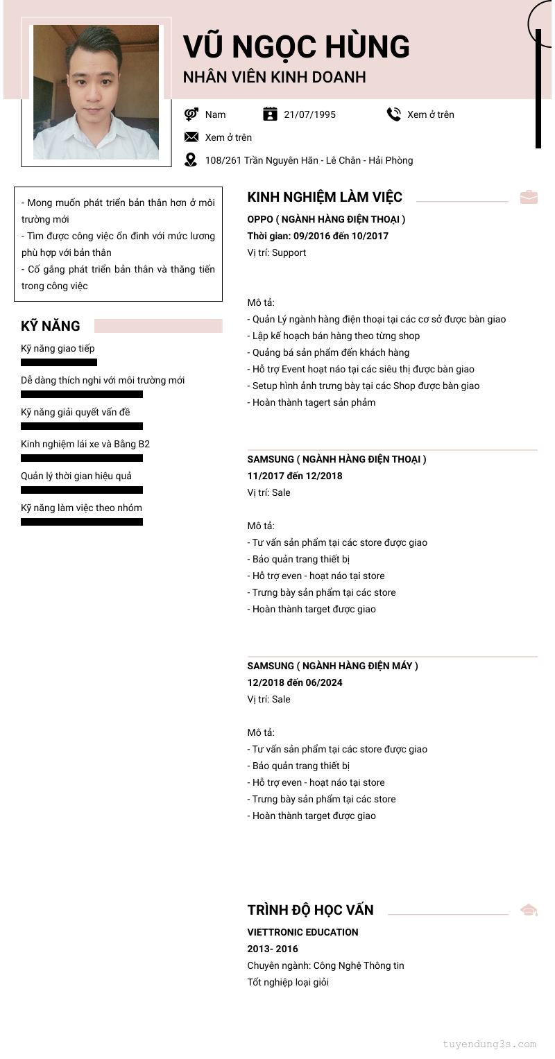 Vị trí: NHân viên kinh doanh