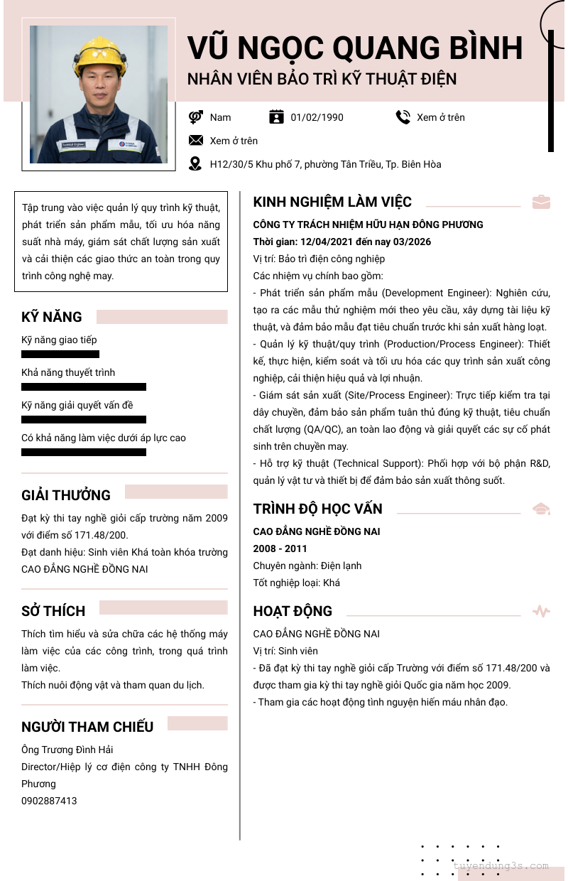 Mở xem thông tin đầy đủ ứng viên Vũ Ngọc Quang Bình chỉ với 2 điểm. Ứng viên được cập nhật ngày 15/03/2026