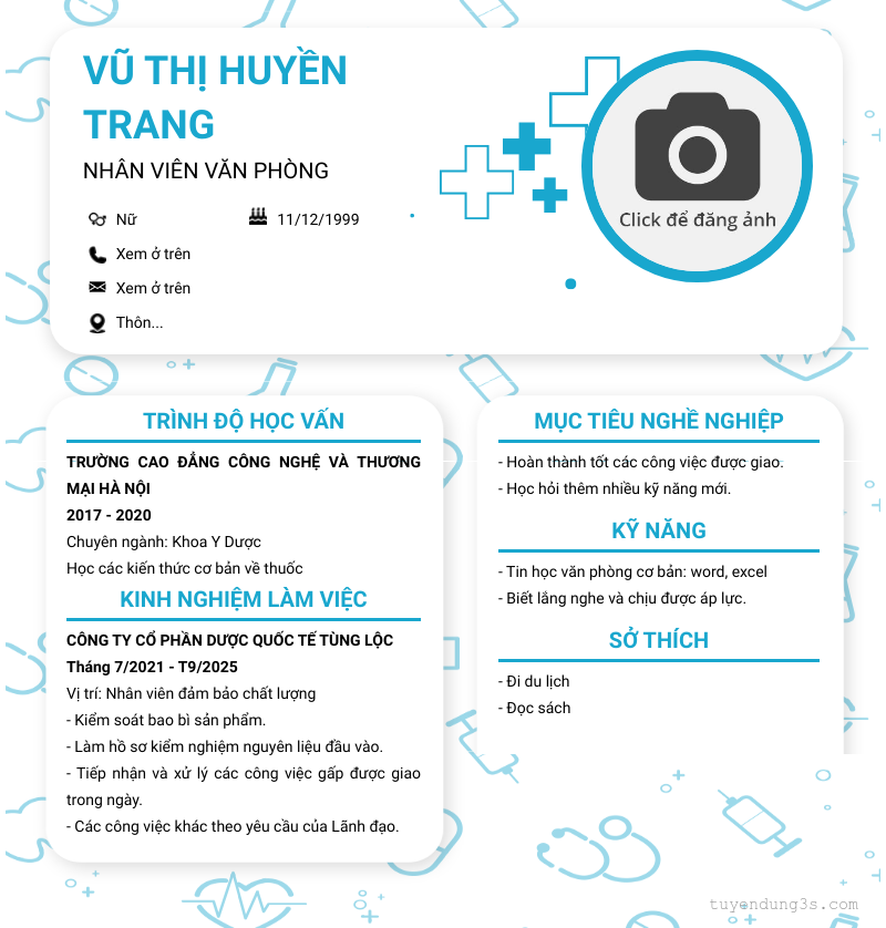 Mở xem thông tin đầy đủ ứng viên Vũ Thị Huyền Trang chỉ với 2 điểm. Ứng viên được cập nhật ngày 13/09/2025