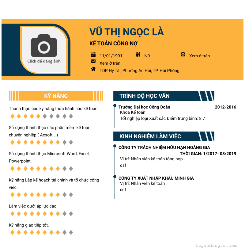 Nơi ở hiện tại: TDP Hy Tái, Phường An Hải, TP. Hải Phòng