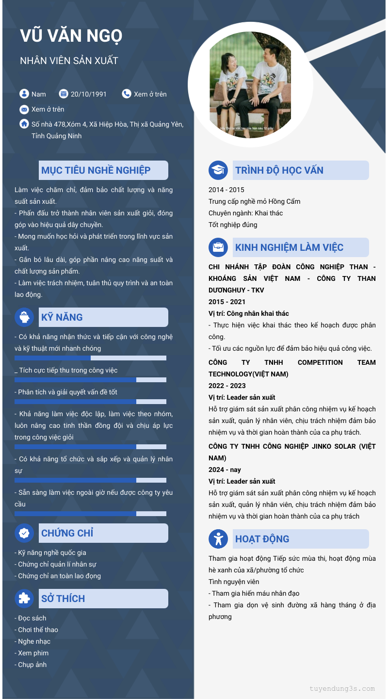 Mở xem thông tin đầy đủ ứng viên Vũ Văn Ngọ chỉ với 2 điểm. Ứng viên được cập nhật ngày 09/10/2025